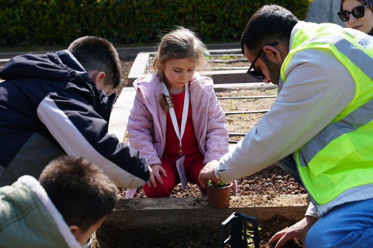 Etkinliğin sonunda ise çocuklara saksı dağıtıldı ve kürekle toprak doldurdukları saksılara çiçek dikmeleri istendi. Saksılara çiçekleri başarıyla diken öğrencilere çiçeklerle birlikte çeşitli hediyeler verildi