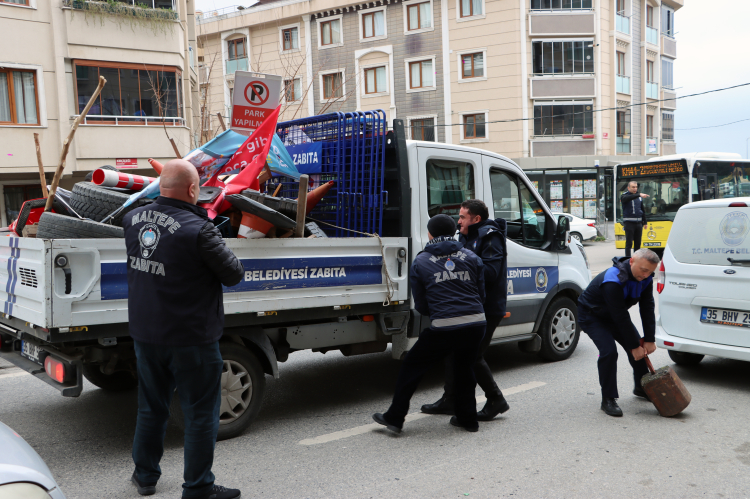 Çalışmada yollardaki araç parkını engelleyecek; dubalar, lastikler ve zincirler de kaldırıldı. Zabıta ekipleri, yapılan çalışmaların ilçe genelinde süreceğini belirtti.