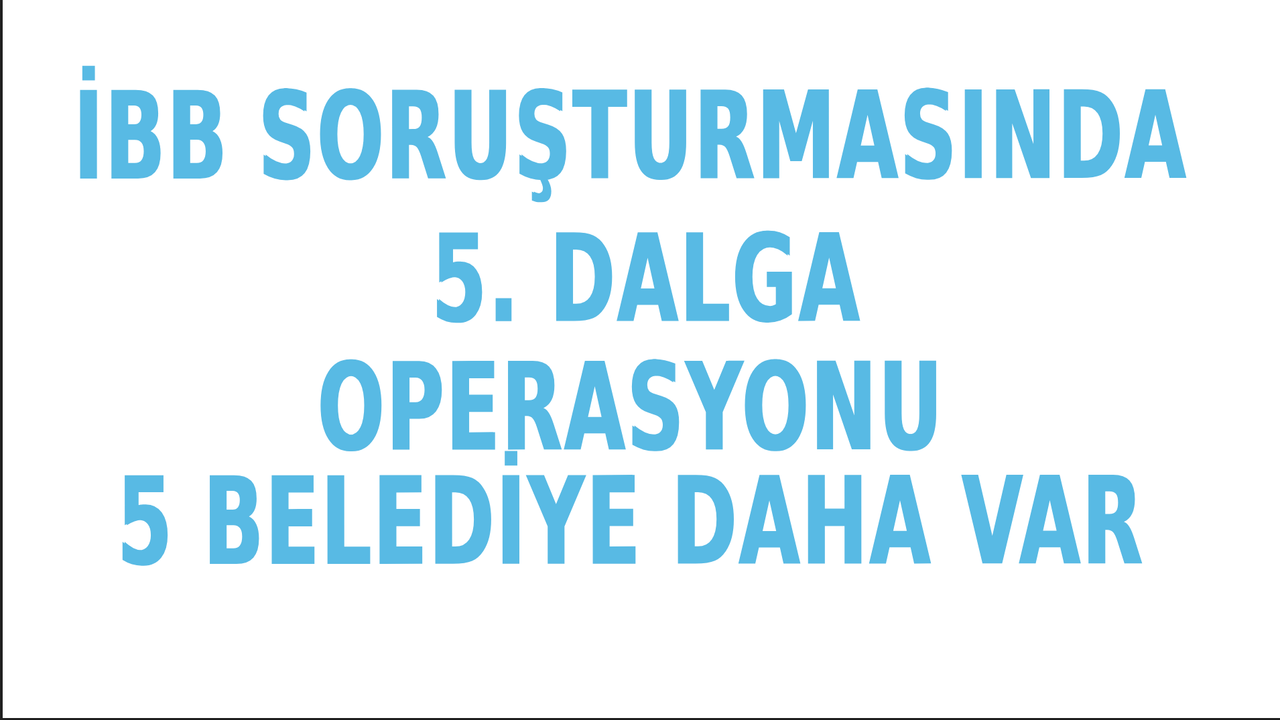 19 Mart'ta başlayan İBB'ye yönelik yolsuzluk soruşturmasında itirafçı beyanlarının ardından genişletilen soruşturmada 5. dalga yolsuzluk operasyonu geldi. İstanbul Cumhuriyet Başsavcılığınca, İBB'ye yönelik yolsuzluk soruşturması, Aziz İhsan Aktaş'ın elebaşı olduğu öne sürülen suç örgütü soruşturması, Büyükçekmece Belediyesi ile Beşiktaş Belediyesi Kültür ve Sosyal İşleri Müdürlüğüyle ilgili 4 ayrı soruşturma kapsamında toplam 47 şüphelinin yakalanmasına yönelik operasyon devam ediyor.