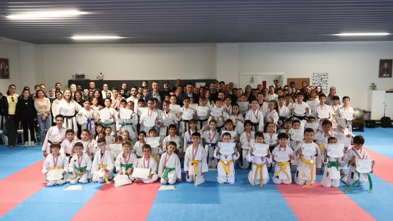 İZMİR (İGFA)- Kuşak takdim töreninde sporcuların heyecanına ortak olan İzmir Aliağa Belediye Başkanı Serkan Acar, aileleri ve antrenörleri tebrik ederek karate kursunun her geçen gün daha da güçlenen bir spor altyapısına sahip olduğuna dikkat çekti.