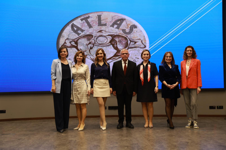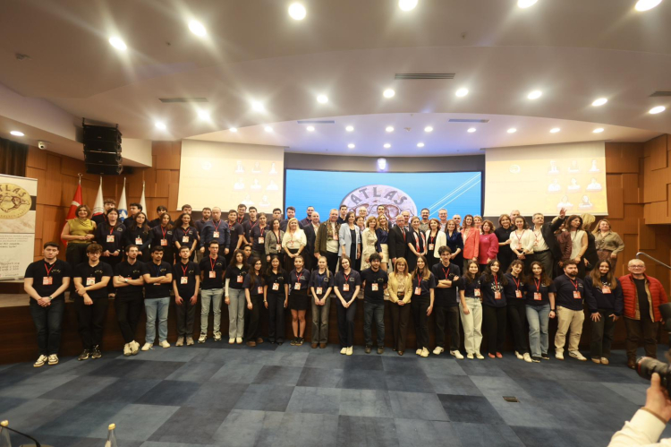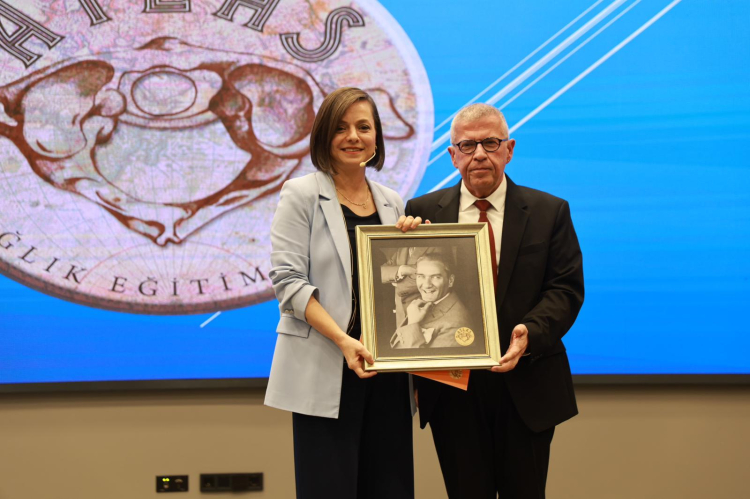 Konuşmanın sonunda Atlas Sağlık Eğitim Vakfı Yönetim Kurulu Başkanı Mustafa Apak, Başkan Kınay'a günün anısına Atatürk fotoğrafı takdim etti.