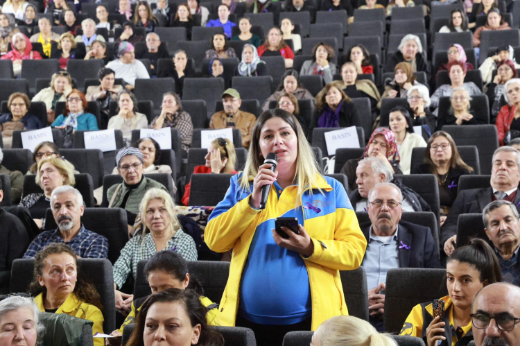 İZMİR (İGFA) - Muzaffer İzgü Konferans Salonu'nda gerçekleşen etkinlikte Karabağlar Belediye Başkanı Helil Kınay ve DİSK'in ilk kadın başkanı Arzu Çerkezoğlu, kadınların çalışma hayatındaki hakları ve örgütlenmenin önemine dikkat çekti.