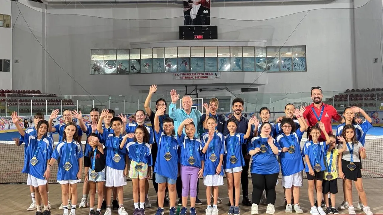 İzmir Büyükşehir Belediyesi’nin yaz spor okulları ile portatif havuzlarından yararlanan çocuklar sertifika ve madalyalarına kavuştu.İZMİR (İGFA) - İzmir Büyükşehir Belediye Başkanı Dr. Cemil Tugay’ın “Spor Başkenti İzmir” hedefi doğrultusunda minikler yaz tatillerini sporla iç içe geçirdi. Bornova Âşık Veysel Rekreasyon Alanı’ndaki Buz Sporları Salonu’ndaki ücretsiz yaz spor okulları ile Konak ve Bayraklı’da açılan portatif havuzlardan yararlanan 7-13 yaş arasındaki çocuklar madalya ve sertifika sevinci de yaşadı.