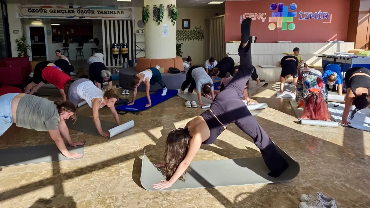 İzmir Büyükşehir Belediyesi bünyesinde faaliyet gösteren Genç İzmir tarafından 'Yoga Saati' başlığıyla düzenlenen yoga atölyesine katılan gençler, hem bedensel esnekliklerini geliştirdi hem de zihinsel rahatlama imkânı buldu.