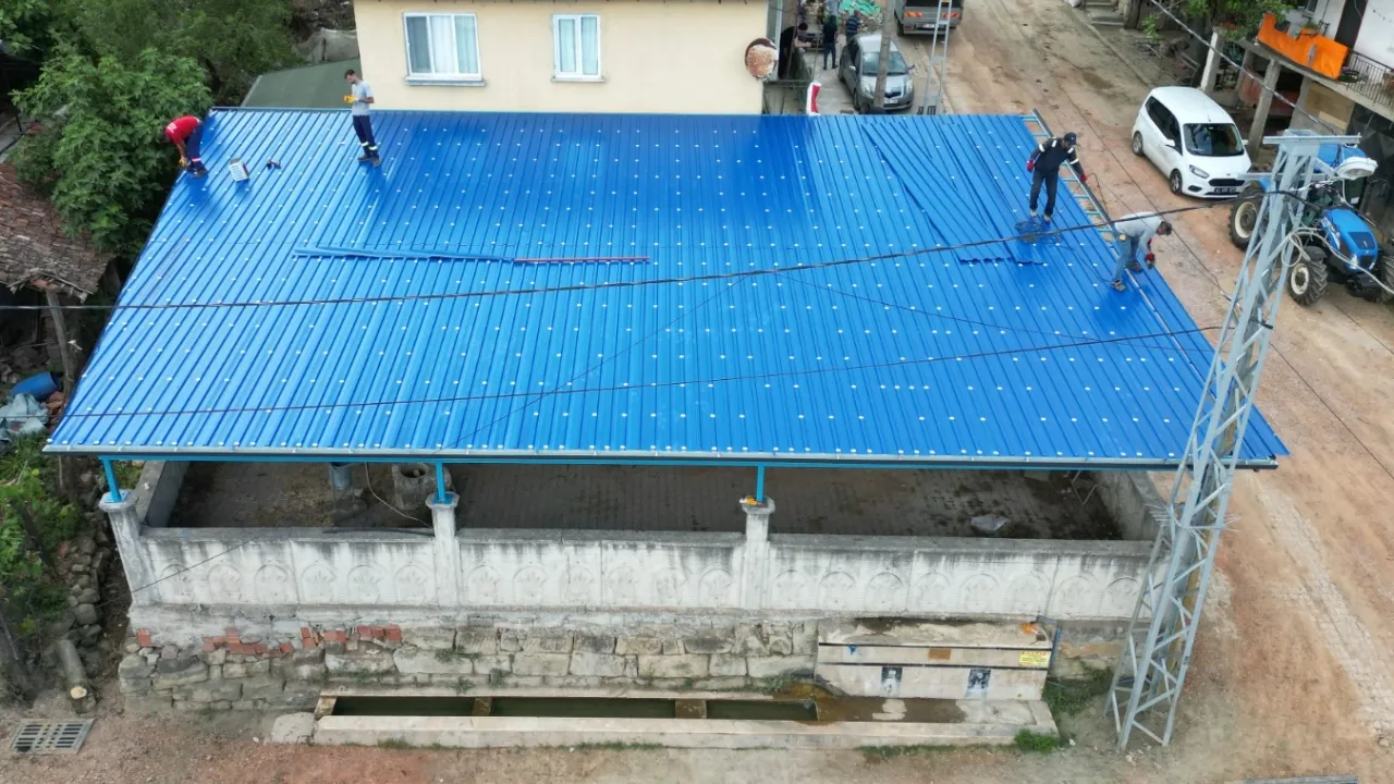 Toplam 210 metrekarelik alana yapılan sundurma, mahalle sakinlerinin cemiyet, mevlit ve toplantı gibi çeşitli etkinliklerinde konforlu bir alan sunacak.