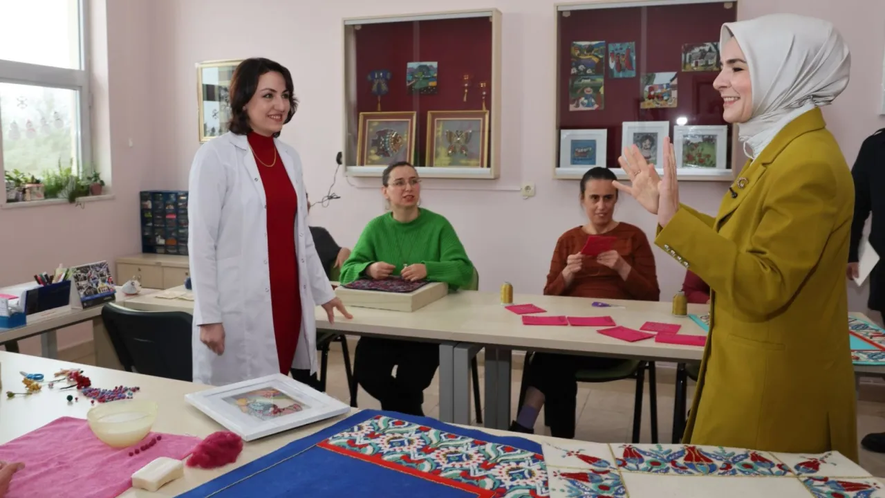 ANKARA (İGFA) - Aile ve Sosyal Hizmetler Bakanı Mahinur Özdemir Göktaş, Saray Engelsiz Yaşam Bakım ve Rehabilitasyon Merkezi'ne ziyarette bulundu. Burada engelli bireylerle bir araya gelen Göktaş, merkezdeki atölyelerde yapılan çalışmalara ilişkin yetkililerden bilgi aldı, ürünleri inceledi.