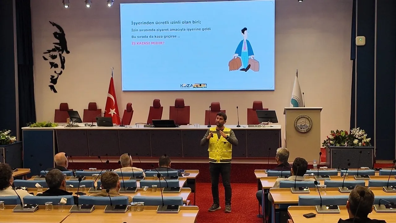 İş kazalarının yaşanmaması için gerekli önlemlerin alınmasına, faaliyetlerin güvenli bir şekilde nasıl gerçekleştirilebileceğine ve olası bir tehlike durumunda ne yapılması gerektiğine yönelik hayati bilgileri içeren iş sağlığı ve güvenliği eğitimlerinde önemli bilgiler aktaran İş Güvenliği Uzmanı Erhan Erensayın, belediye personelini bilgilendirdi.