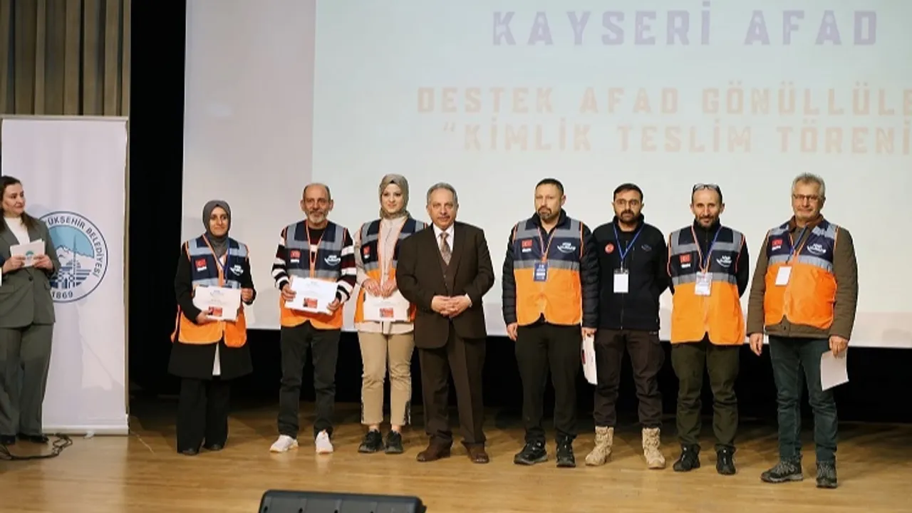 Konuşmaların ardından başta Başkan Yalçın olmak üzere protokol tarafından AFAD destek gönüllülerine kimlikleri verildi.