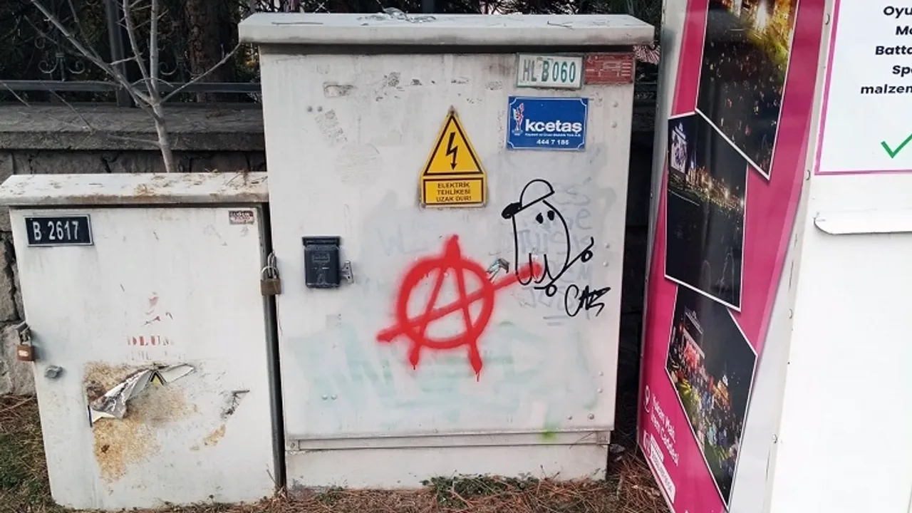 KAYSERİ (İGFA) - Kayseri'nin Talas ilçesinde kamuya ait alanlardan parklarda ve muhtelif yerlerde bulunan elektrik panosu, trafo duvarı ve inşaat çevre koruma çitlerine sprey boyayla çevre ve görüntü kirliliğine yol açtığı tespit edilen A.K. ve H.Y.T.’ye işlem uygulandı.