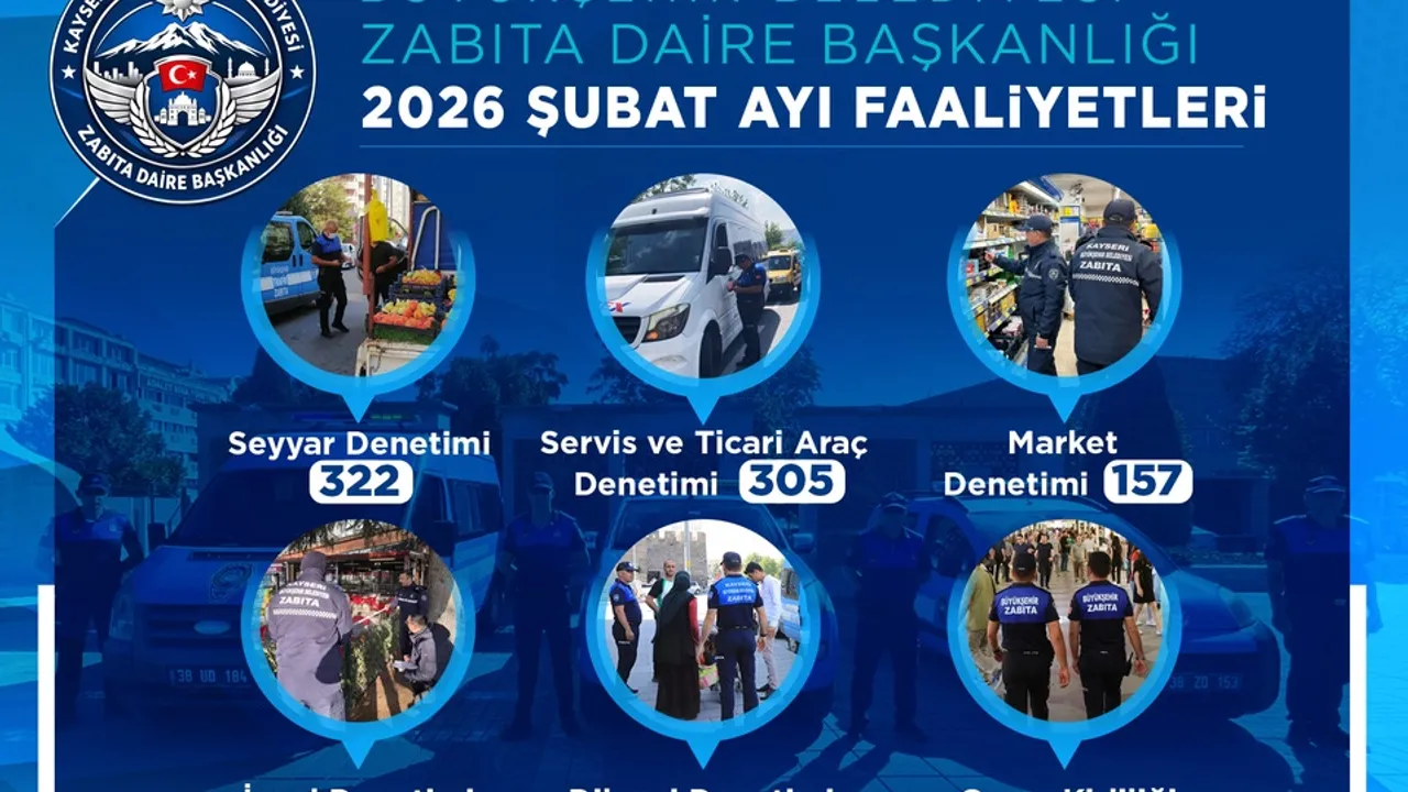 Kayseri Büyükşehir Belediyesi Zabıta Daire Başkanlığı ekipleri, şubat ayında bin 522 denetim gerçekleştirerek kentte huzur, düzen ve güvenliğin tesis edilmesine katkı sağladı.