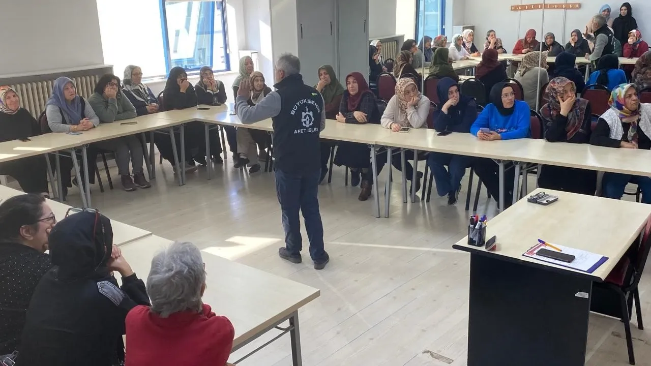 Kocaeli Büyükşehir Belediyesi olası bir afet öncesinde toplum bilinci oluşturmak için “Afet Farkındalık Eğitimi” veriyorKOCAELİ (İGFA) - Kocaeli Büyükşehir Belediyesi olası bir afette toplum bilinci oluşturmak için çalışmalarını sürdürüyor. Bu kapsamda Afet İşleri Dairesi Başkanlığı, KO-MEK kursiyerlerine “Afet Farkındalık Eğitimi” vererek, afet anında ne yapmaları gerektiği konusunda bilinçlenmelerini sağladı.
