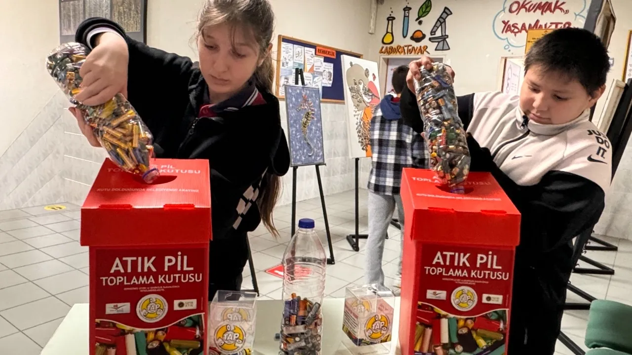 Kocaeli Büyükşehir, 18 Şubat Dünya Pil Günü farkındalık çalışması kapsamında Gebze Balçık İlkokulu ve Ortaokulu öğrencilerini bilinçlendirdi.KOCAELİ (İGFA) - Kocaeli Büyükşehir Belediyesi, sıfır atık hedefi doğrultusunda atık pillerin çevreye zarar vermeden toplanması ve geri dönüştürülmesi amacıyla 18 Şubat Dünya Pil Günü’nde, Gebze Balçık İlkokulu ve Ortaokulu’ndaki gençleri bilgilendirdi.