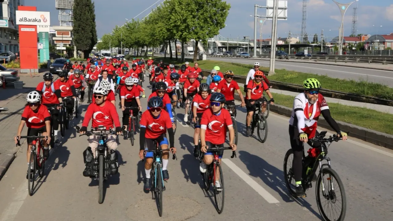 Bisiklet kulüpleri ile vatandaşlar ilk olarak Kent Meydanı’nda dev Türk bayrağı açtı. Ardından 19 Mayıs ruhu için pedallarını çeviren bisikletli vatandaşlar Cumhuriyet Bulvarı üzerinden ilerledikten sonra Yahya Kaptan’a ulaştı.