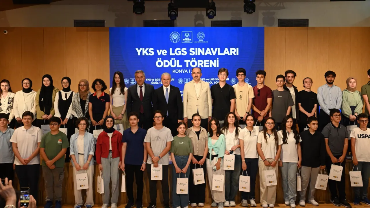 Konya’da YKS ve LGS sınavlarında üstün başarı gösteren öğrenciler, Konya Valisi İbrahim Akın, Büyükşehir Belediye Başkanı Uğur İbrahim Altay ve İl Milli Eğitim Müdürü Murat Yiğit’in katıldığı özel bir programla ödüllendirildi.KONYA (İGFA) -Konya Valisi İbrahim Akın ve Konya Büyükşehir Belediye Başkanı Uğur İbrahim Altay, Yüksek Öğretim Kurumları Sınavı’nda (YKS) ile Liselere Geçiş Sistemi (LGS) sınavında dereceye giren öğrencilerle buluştu.