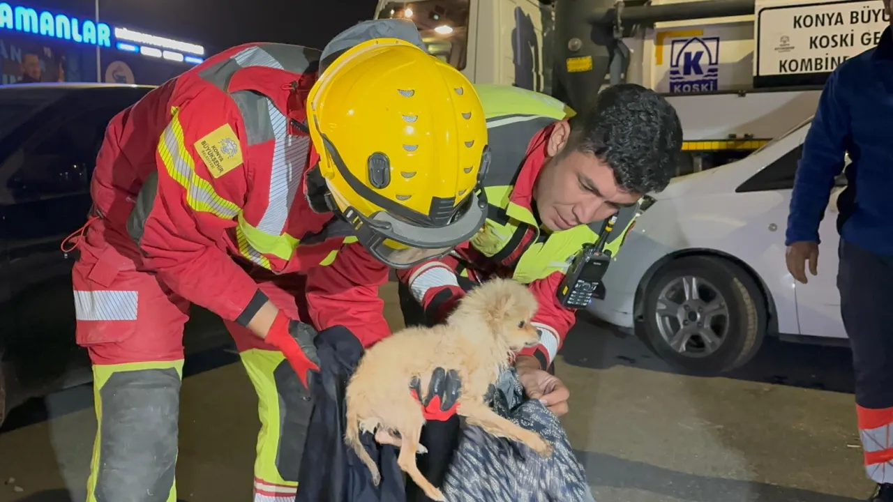 KONYA (İGFA) - Kanalizasyon borusuna düşerek mahsur kalan köpek, Konya Büyükşehir Belediyesi ekiplerinin özverili çalışmasıyla özgürlüğüne kavuştu.