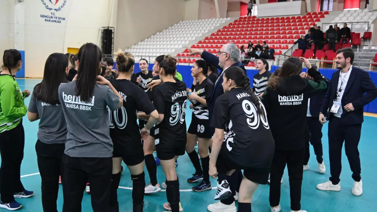 Manisa Büyükşehir Belediyespor Kulübü Hentbol takımı, Eskişehir’de düzenlenen play-off müsabakalarının ilk gününde Sinop Spor Kulübü’nü 29-27 mağlup ederek, 1. Lig’e yükseldi. Kulüp bünyesinde bu sezon kurulan hentbol branşında Manisa BBSK, tarihi bir başarıya imza attı. Tecrübeli kaleci Leyla Gümüşsoy da maç boyunca yaptığı kritik kurtarışlarla galibiyetin mimarlarından biri oldu.MANİSA (İGFA) - Manisa Büyükşehir Belediyespor Kulübü, önemli bir başarıya daha imza attı. Bu sezon kulüp bünyesinde ilk kez kurulan hentbol kadın takımı, normal sezonda ortaya koyduğu başarılı performansla adından söz ettirdi. Kulüp, 1. Lig’e yükselme finallerine de kalmayı başardı. Eskişehir’de düzenlenen finallerin ilk gününde Sinop Spor Kulübü ile karşılaşan Manisa BBSK, 29-27’lik skorla aldığı galibiyet sonrasında 1. Lig’e yükselmeyi garantileyen ilk takım oldu. Kaleci Leyla Gümüşsoy, maç boyunca yaptığı önemli kurtarışlarla takımının öne çıkan oyuncularından biri oldu. Gizem Koca da attığı 10 gol ile takımına önemli katlı verdi.