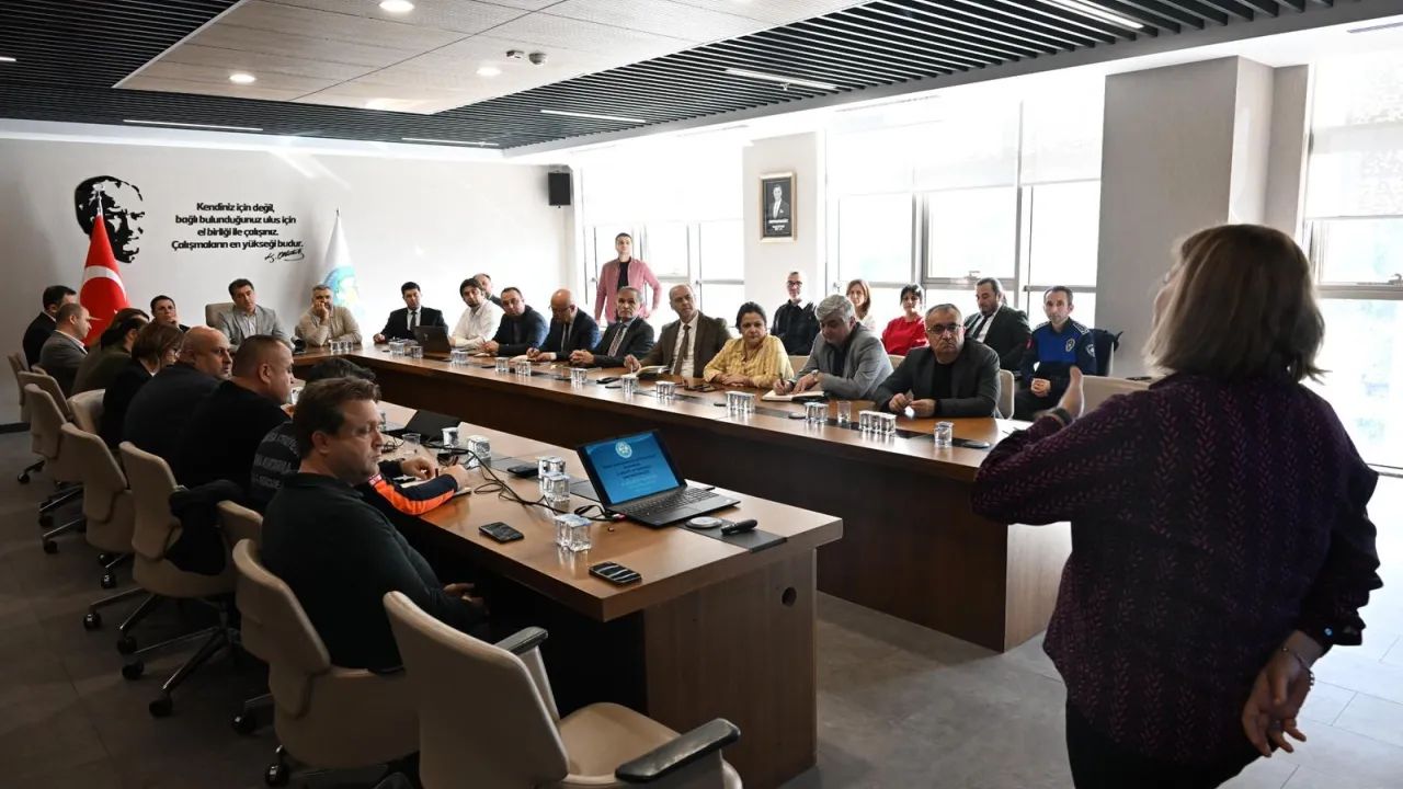 MANİSA (İGFA) - Manisa Büyükşehir Belediyesi bünyesindeki İnsan Kaynakları ve Eğitim Dairesi Başkanlığı koordinesinde düzenlenen toplantıya; Genel Sekreter Yardımcıları Ahmet Ata Temiz ve Erk Kayabaş'ın yanı sıra daire başkanları, şube müdürleri ve İSG temsilcileri katılım sağladı.
