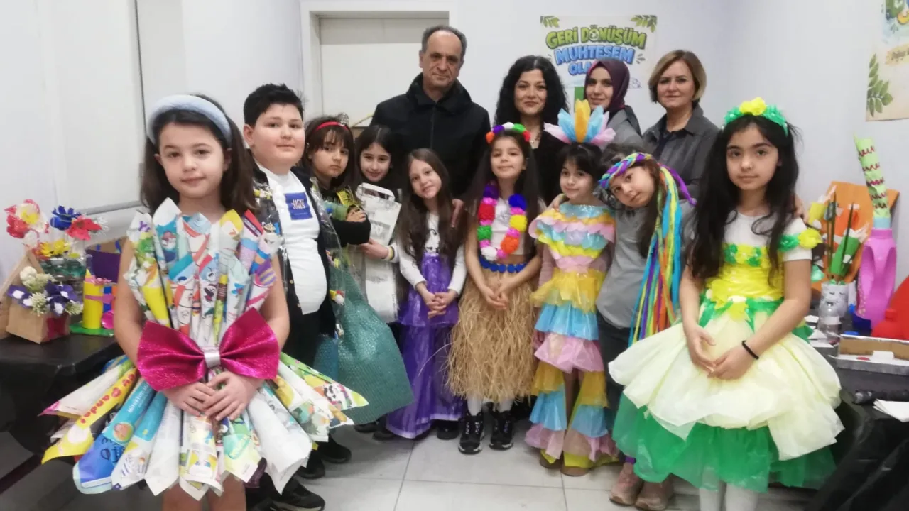 BURSA (İGFA) - Mudanya Şehit Tunahan Yavuz İlkokulu 2. sınıf öğrencileri, öğretmenleri Semra Ekiz, Filiz Çokeker ve Betül Orak 'ın katkılarıyla anlamlı bir etkinliğe imza attı. Sıfır atık bilincini artırmak amacıyla düzenlenen defile ve sergide, öğrenciler geri dönüşüm malzemelerinden tasarladıkları kostümleri sergiledi.