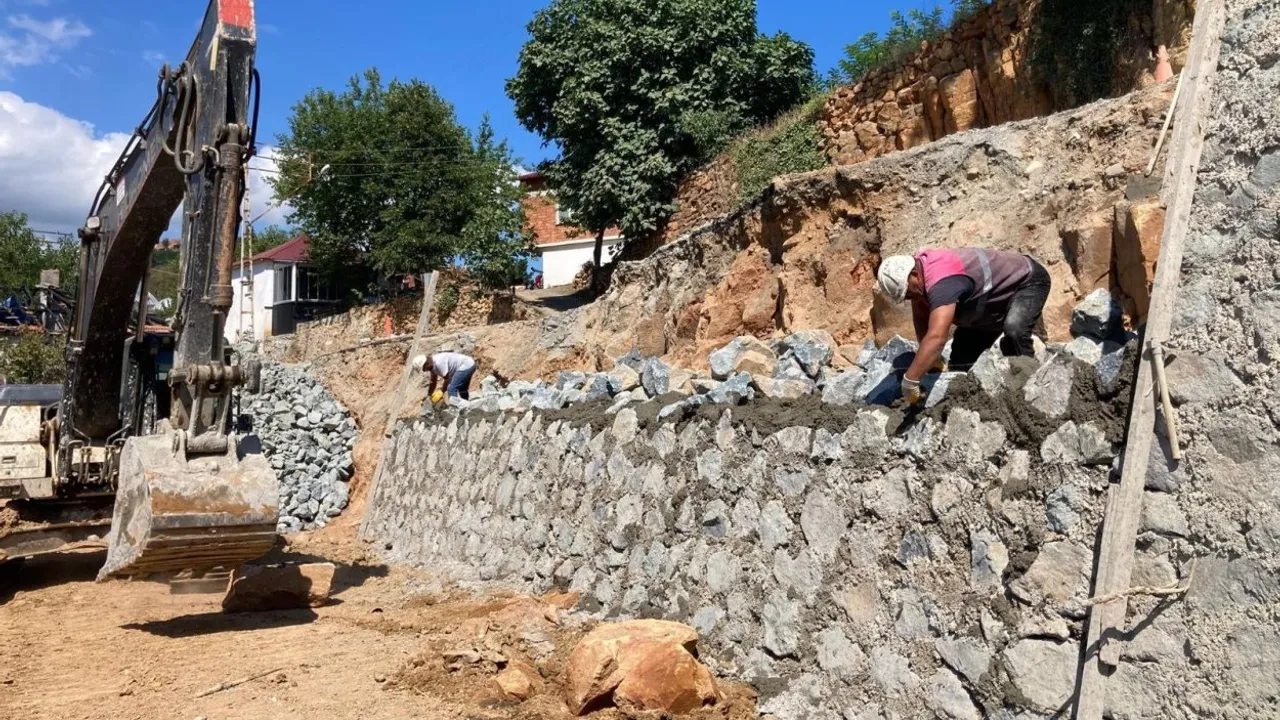 100 metre uzunluğunda 11 metre yüksekliğinde yapılan taş duvarda çalışmalar devam ediyor. 45. metresinde çalışan ekipler çalışmaları kısa sürede tamamlayarak vatandaşlara güvenli bir güzergâh sunmuş olacak.