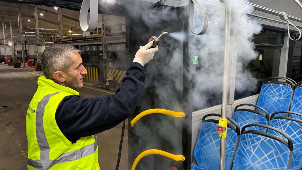 Ulaşım hizmetlerinin sabahın ilk ışıklarından gecenin geç saatlerine kadar süren yoğun temposu, temizlik ekiplerinin gece boyunca yürüttüğü titiz dezenfeksiyon çalışmalarıyla tamamlanıyor. Şehrin dört bir yanında yolcuların temas ettiği tutacaklar, koltuklar, kapı girişleri ve tüm yüzeyler özel tekniklerle sterilize ediliyor. Dezenfeksiyonun ardından araçlar havalandırılarak iç mekân hava kalitesi artırılıyor ve otobüsler yeni güne tamamen hijyenik bir şekilde hazırlanıyor.