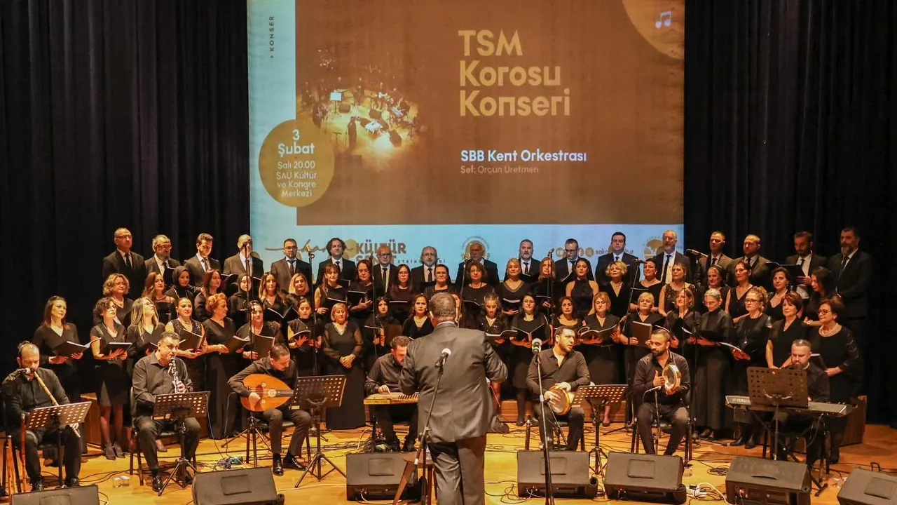 Sakarya Büyükşehir Belediyesi kültür sanat etkinlikleri kapsamında sahne alan SAMEK Türk Sanat Müziği Korosu, Hüzzam makamında hazırlanan özel repertuvarıyla müzikseverlere unutulmaz bir gece yaşattı.