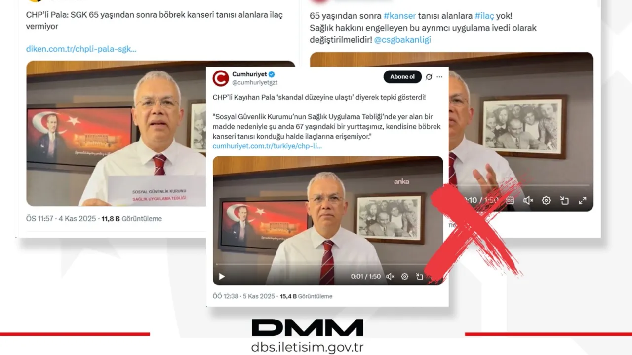 ANKARA (İGFA) - İletişim Başkanlığı Dezenformasyonla Mücadele Merkezi, sosyal medyada ve bazı basın organlarında yer alan 'SGK 65 yaş üzeri böbrek kanseri hastalarına ilaç vermiyor' iddialarının gerçeği yansıtmadığını duyurdu. Kurum açıklamasında, söz konusu paylaşımların kamuoyunu yanıltmaya yönelik olduğu vurgulandı.