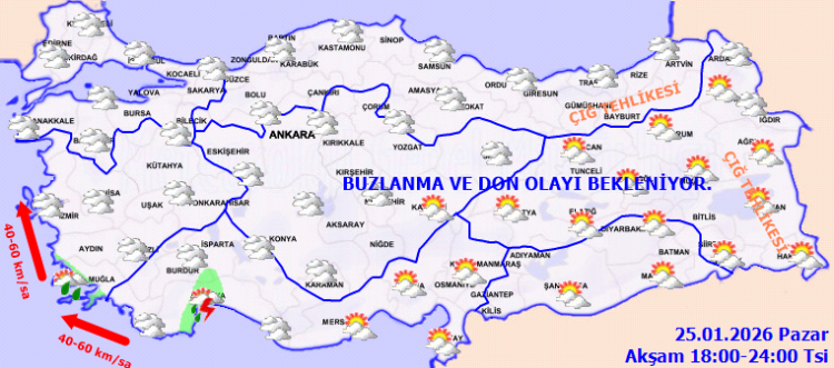 ANKARA (İGFA) - Meteoroloji Genel Müdürlüğü, 25 Ocak Pazar gününe ilişkin hava tahmin raporunu yayımladı.
