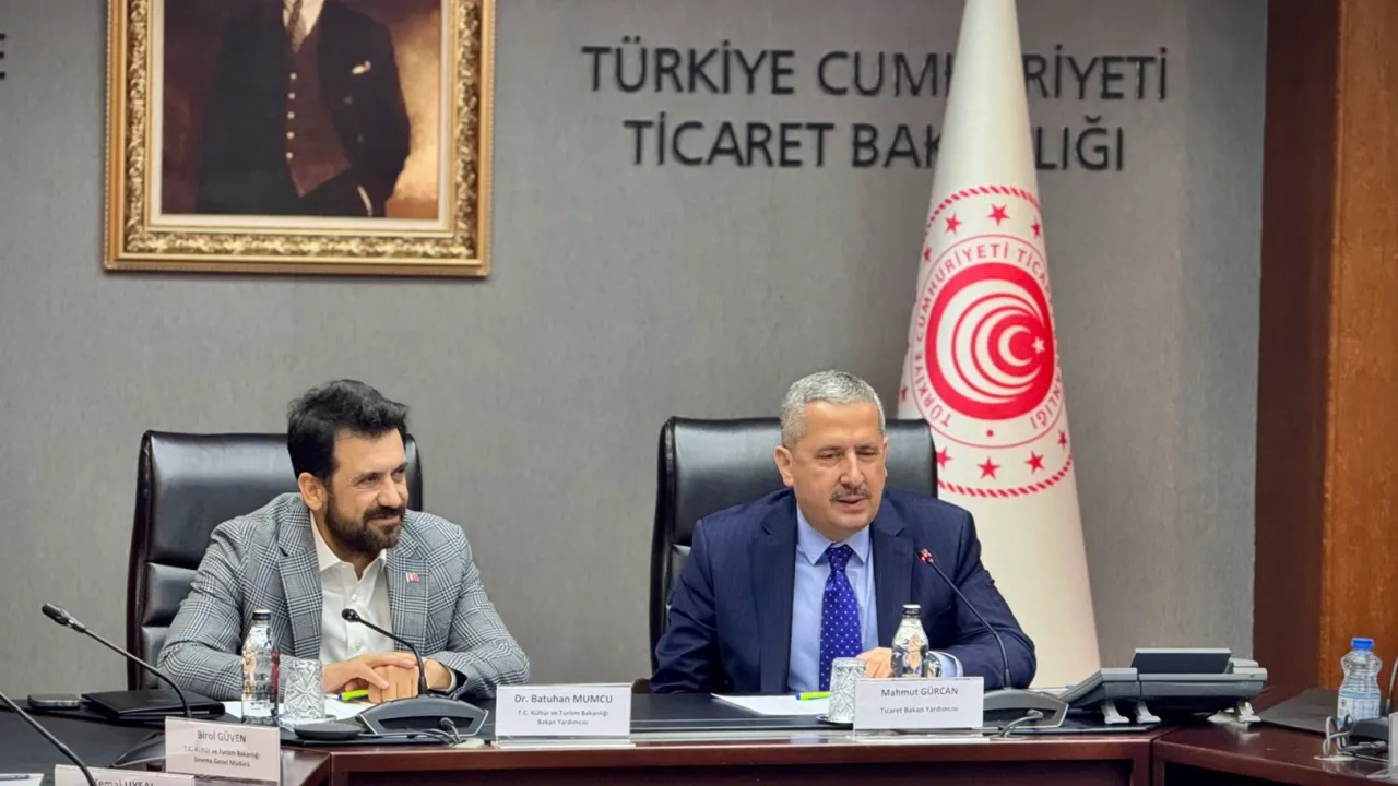 Ticaret Bakan Yardımcısı Mahmut Gürcan, sinema sektörünün ihracat potansiyelini artırmak ve yerli yapımların küresel görünürlüğünü güçlendirmek için sektör temsilcileriyle bir araya geldi.ANKARA (İGFA) - Ticaret Bakan Yardımcısı Mahmut Gürcan, Kültür ve Turizm Bakan Yardımcısı Batuhan Mumcu, Sinema Genel Müdürü Birol Güven, Sinema Salonu Yatırımcıları Derneği (SİSAY) ve Alışveriş Merkezleri ve Yatırımcıları Derneği (AYD) temsilcileriyle Ticaret Bakanlığı’nda bir toplantı gerçekleştirdi.