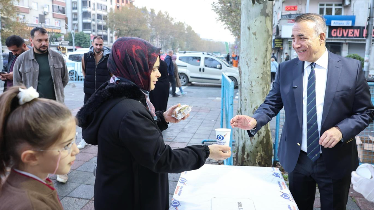 Haftanın ilk gününde Sultançiftliği Merkez Camii önündeki ikram çeşmesine gelen Sultangazi Belediye Başkanı Abdurrahman Dursun, vatandaşaçorba ikram ederek sohbet etti.
