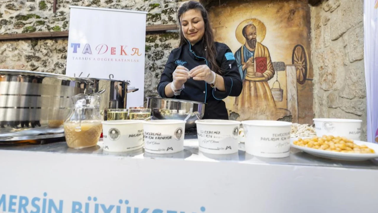 MERSİN (İGFA) - Binlerce yıllık köklü bir tarihe sahip olan Tarsus'ta, mutfak kültüründe sıklıkla yapılan yüksük çorbası, Tatar çorbası ve mamül kurabiyesi, TADEKA Binası bahçesinde kurulan stantlarda usta ellerde belli tarifler ölçüsünde hazırlandı. Yapım aşamaları kayda alınan ürünler, daha sonra TADEKA üyelerine ikram edildi.