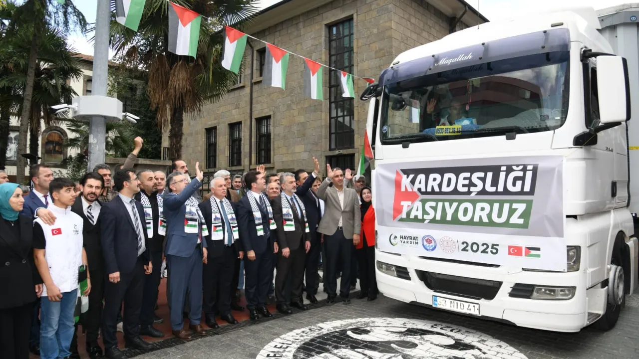 Trabzon Büyükşehir Belediyesi, Hayrat İnsani Yardım Derneği ve İl Milli Eğitim Müdürlüğü iş birliğinde toplanan 250 ton insani yardım malzemesi, 10 TIR'dan oluşan konvoyla Gazze'ye gönderilmek üzere uğurlandı.