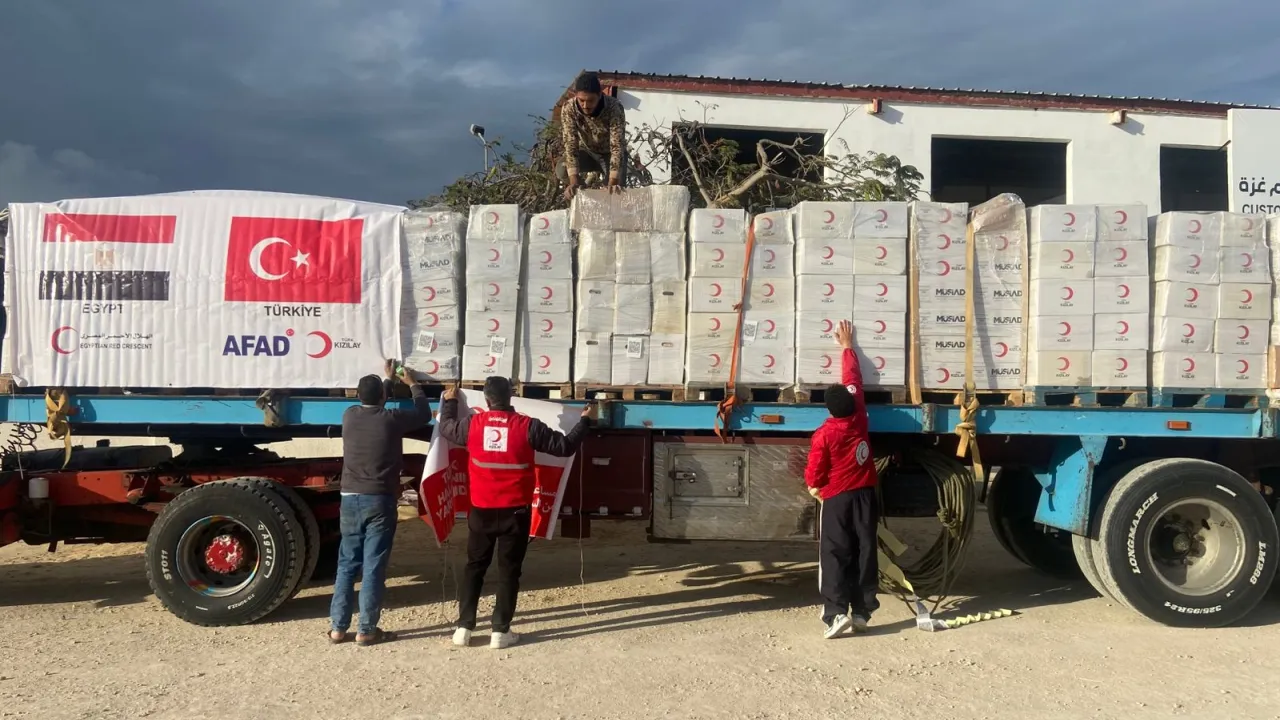 Bu kapsamda, Mısır Kızılayı iş birliğiyle Ariş’teki gümrüklü depoda Marin 2 gemisinden tahliye edilen yardım malzemelerinin tırlara yüklenmesi ve Gazze’ye geçişine başlandı.