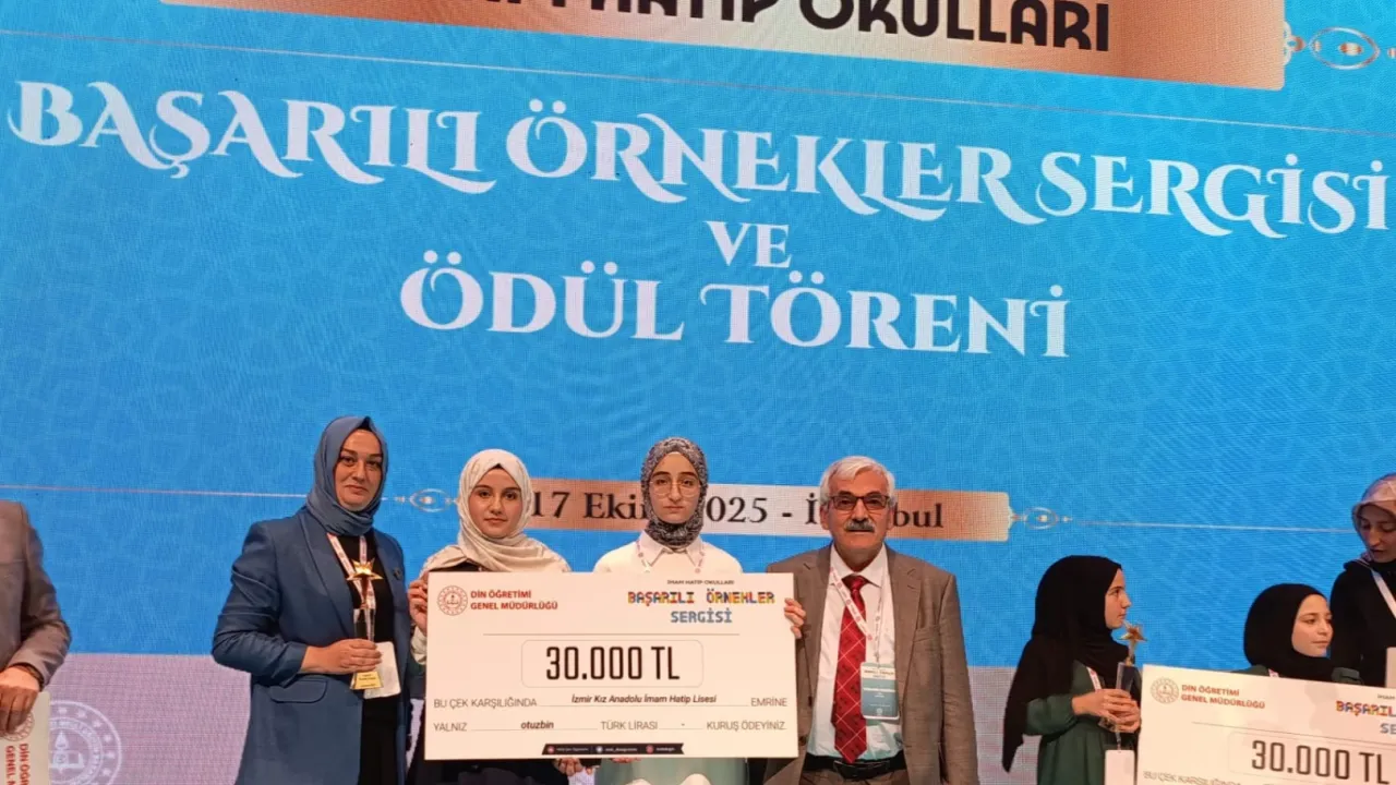 İZMİR (İGFA) - İzmir, bu prestijli organizasyonda üç okulu ile finallere kalarak önemli bir başarıya imza attı. İzmir Kız Anadolu İmam Hatip Lisesi, Mustafa Yaman Anadolu İmam Hatip Lisesi ve Şehit Oraloğlu Anadolu İmam Hatip Lisesi; Türkiye genelinde sergilenmeye değer bulunan projeleriyle ilk 50 okul arasında yer aldı.