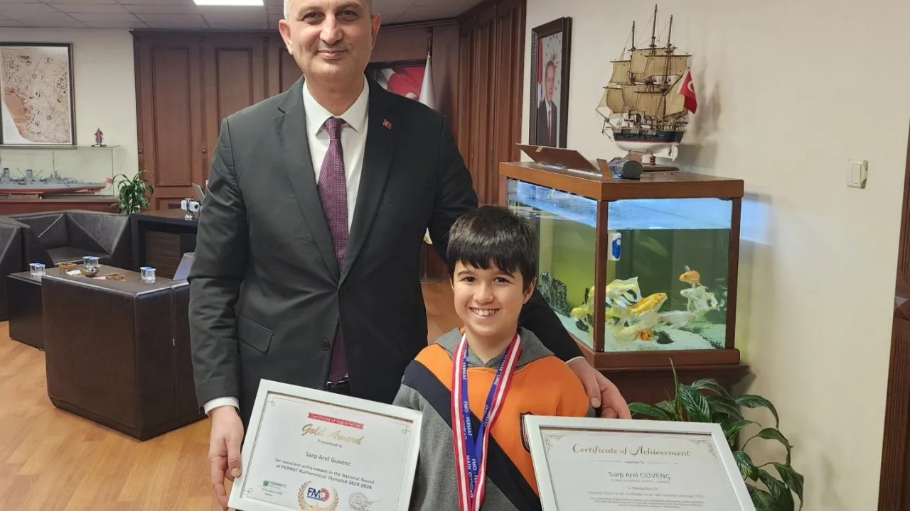 Güvenç'in kazandığı başarıdan övgü ile söz eden Başkan Sezer, 'Güneydoğu Asya Matematik Olimpiyatları ve FERMAT Matematik Olimpiyatlarının Ulusal Turu'nda kazandığı 3 altın madalya ile Türkiye'nin ve ilçemiz Gölcük'ün gurur kaynağı olan Halıdere İlkokulu öğrencisi Sarp Arel Güvenç'i belediyemizde misafir etmekten büyük mutluluk duyduk. Bu büyük başarıda emeği geçen kıymetli ailesini ve öğretmenlerini gönülden tebrik ediyorum. Sarp Arel'in azim ve yeteneği ile daha nice başarıya imza atacağına yürekten inanıyor, başarılarının artarak devam etmesini diliyorum' dedi.