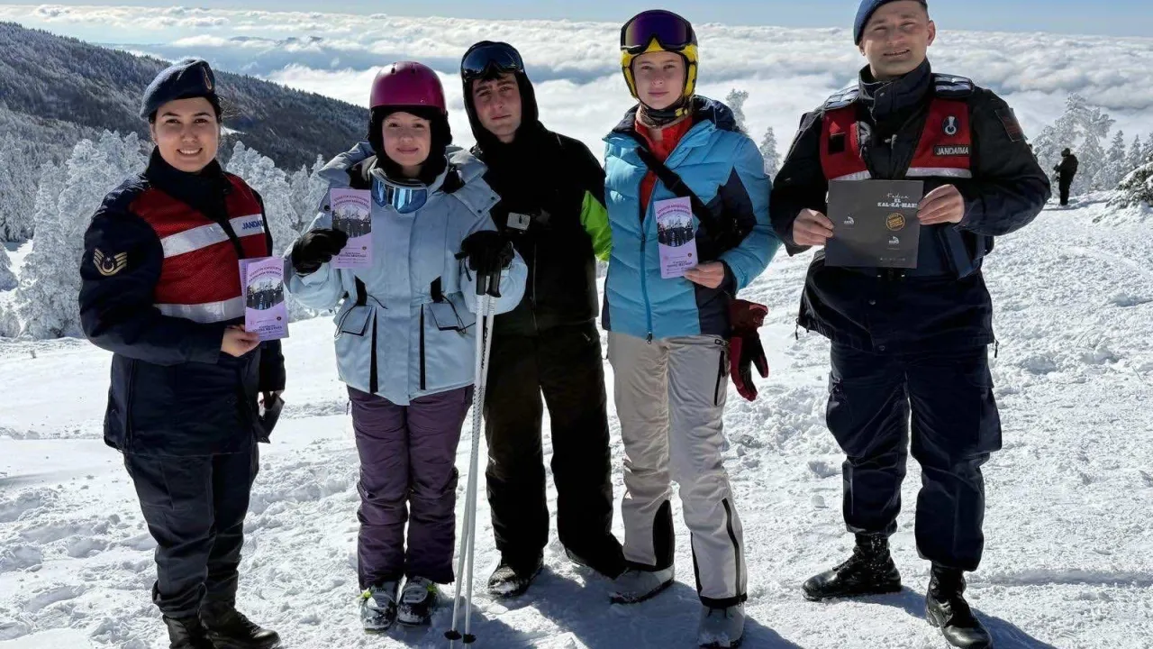 Bursa İl Jandarma Komutanlığı, Uludağ Milli Parkı'nda kış turizmi için bulunan vatandaşlara Kadın Acil Destek Uygulaması (KADES) hakkında bilgilendirme çalışması gerçekleştirdi.