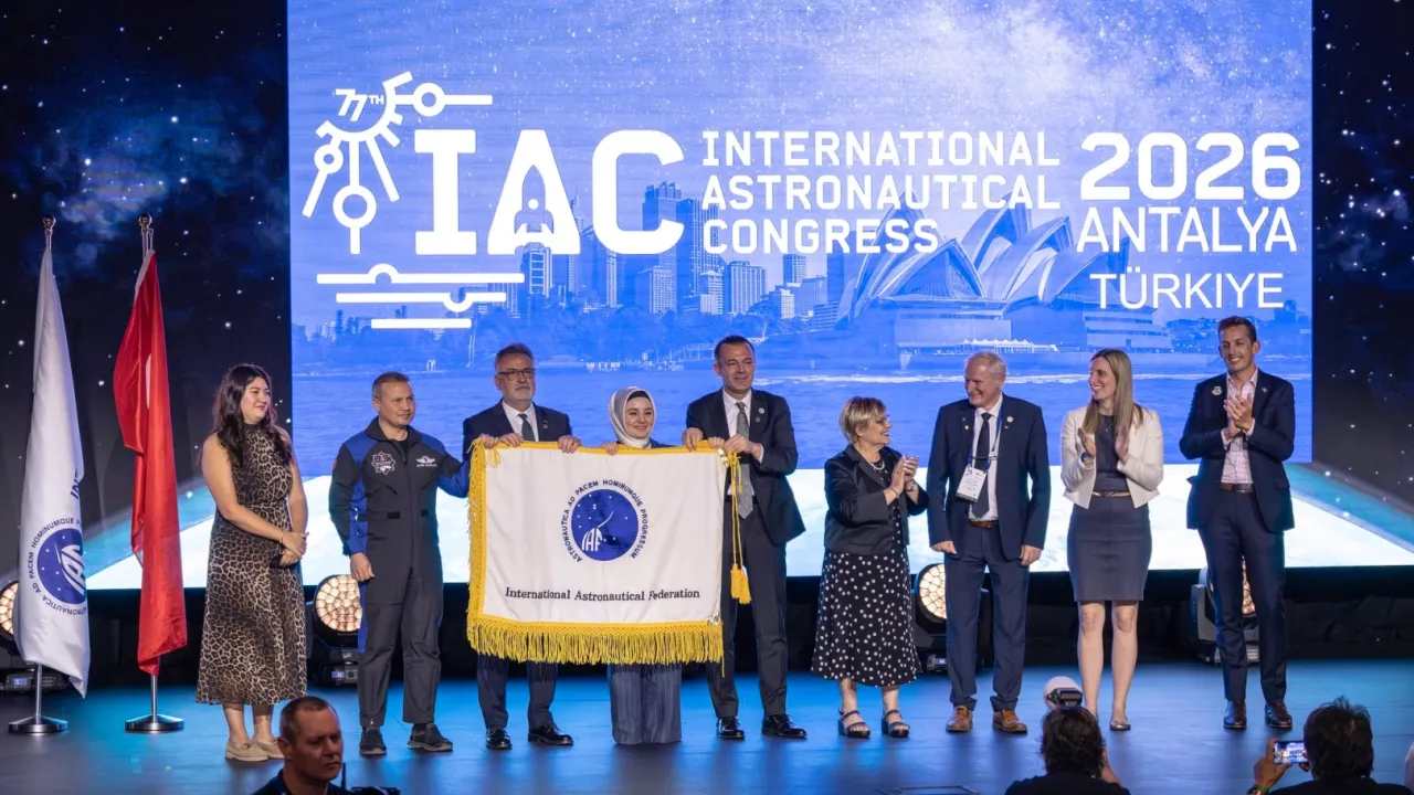 Türkiye, Uluslararası Uzay Kongresi (IAC) 2026'nın ev sahibi olarak Sidney'den bayrağı devraldı. 5-9 Ekim 2026'da Antalya'da düzenlenecek kongre, Sanayi ve Teknoloji Bakanlığı koordinasyonunda, TUA ve SAHA İstanbul ev sahipliğinde gerçekleşecek. Türkiye, küresel uzay diplomasisinde liderlik hedefliyor.